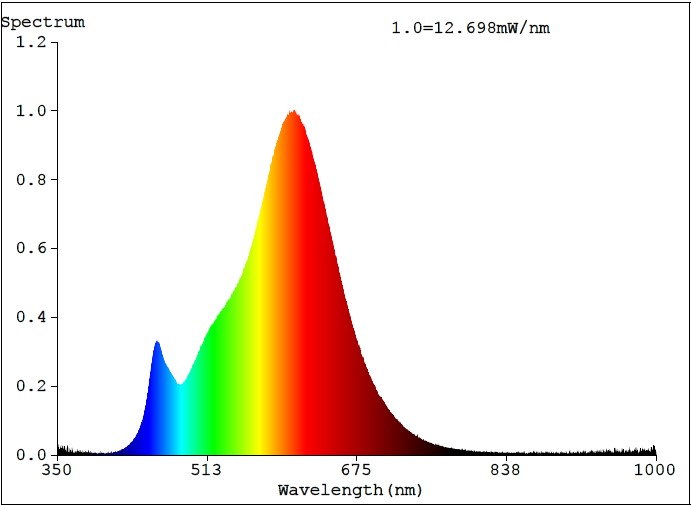 | Tam yükte, 250nm ile 800nm aralığında spektral güç dağıtımı |
