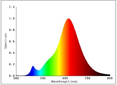 | Tam yükte, 250nm ile 800nm aralığında spektral güç dağıtımı |