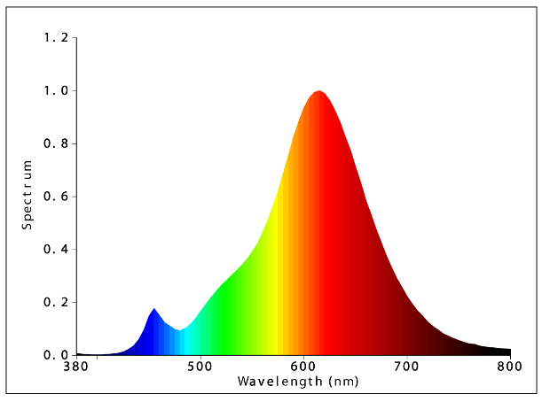 Tam yükte, 250nm ile 800nm aralığında spektral güç dağıtımı Sayfanın sonundaki fotoğrafa bakınız