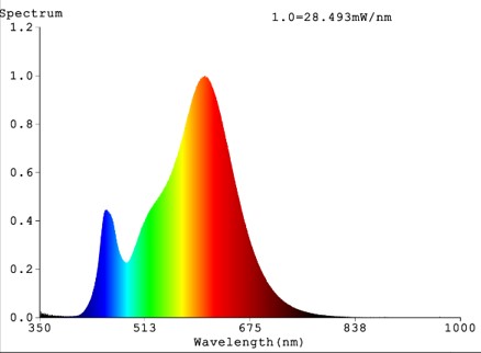 | Tam yükte, 250nm ile 800nm aralığında spektral güç dağıtımı |