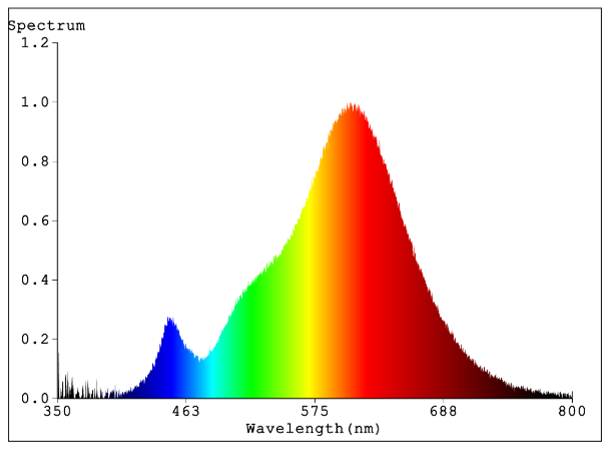 | Tam yükte, 250nm ile 800nm aralığında spektral güç dağıtımı |