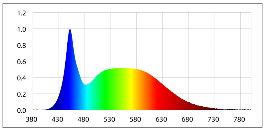 | Tam yükte, 250nm ile 800nm aralığında spektral güç dağıtımı |