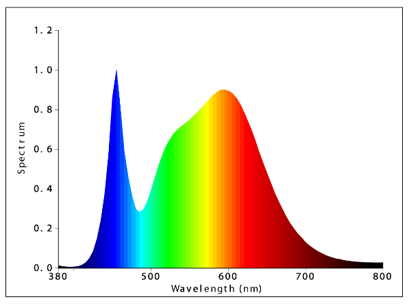 | Tam yükte, 250nm ile 800nm aralığında spektral güç dağıtımı |